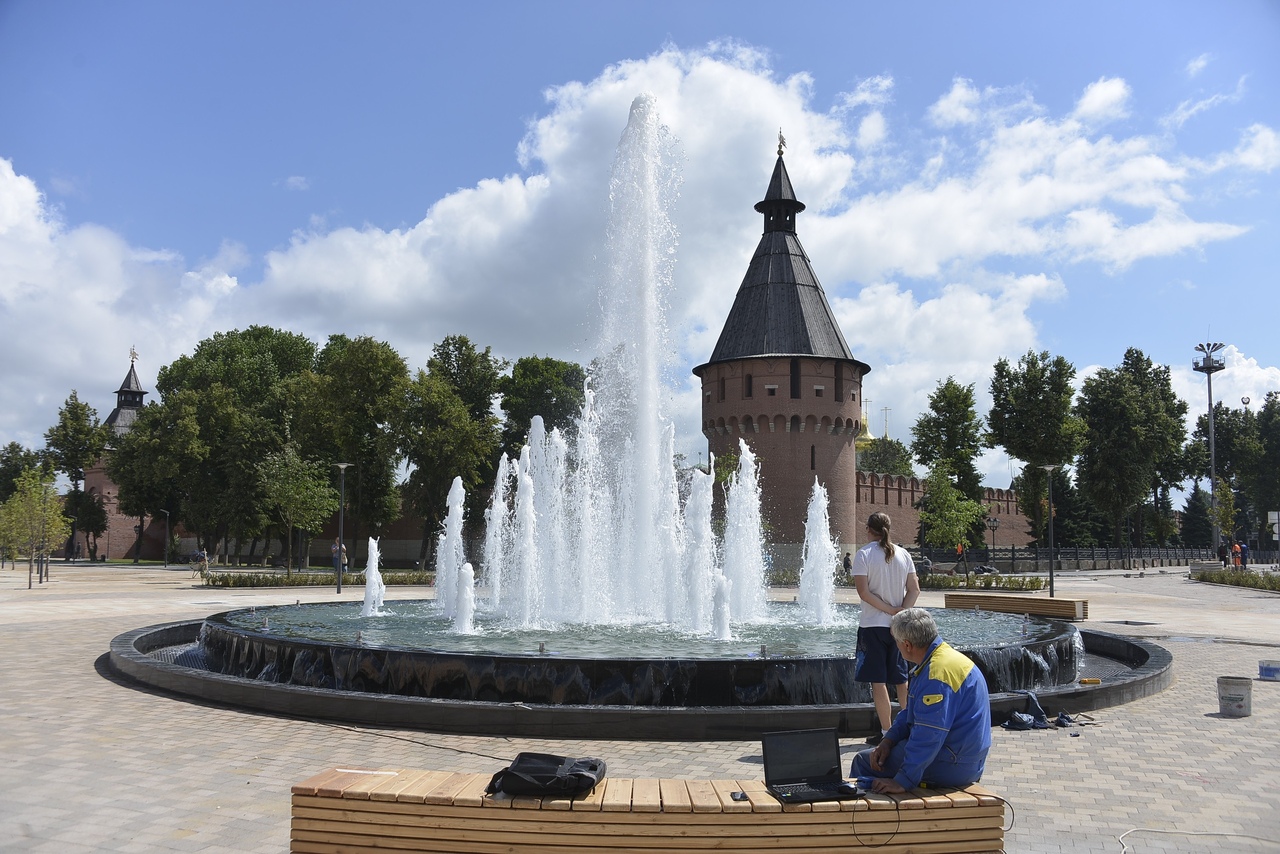 В рамках проекта «Тульская набережная» в центре Крестовоздвиженской площади установили фонтан. В настоящее время проводится его тестирование. Также завершаются работы по благоустройству. Вокруг фонтана выкладывают тротуарную плитку, устанавливают скамейки.