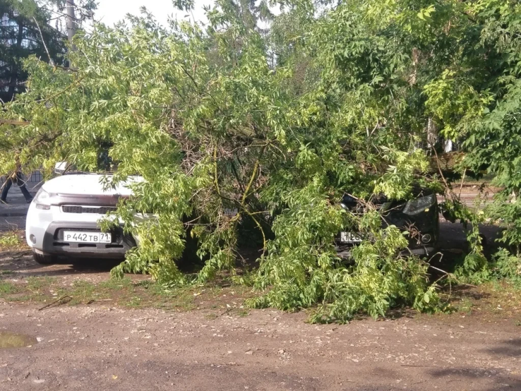 В Туле на ул. Калинина на припаркованные машины упало дерево