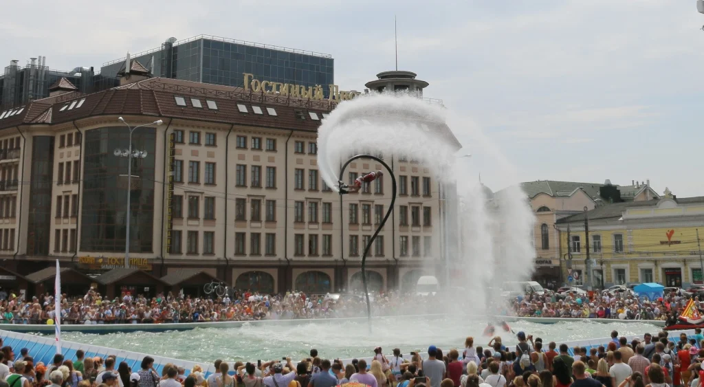 Выступления шоу-группы сборной России на флайбордах состоятся еще дважды: 16.00 – дневное трюковое шоу, 21.30 – вечернее пиротехническое шоу. Летающие люди выполнят акробатические трюки на высоте более 10 метров.