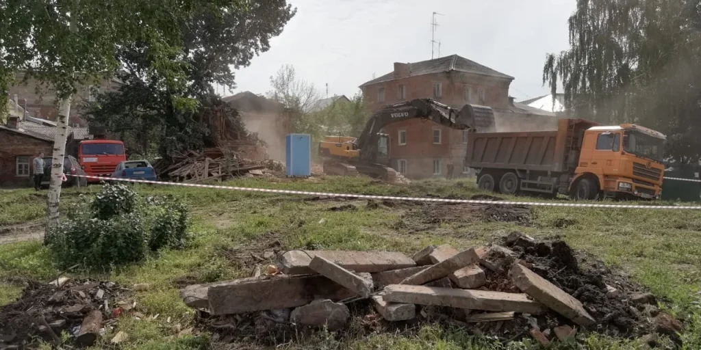 Также ведутся работы по вывозу строительного мусора после сноса.
