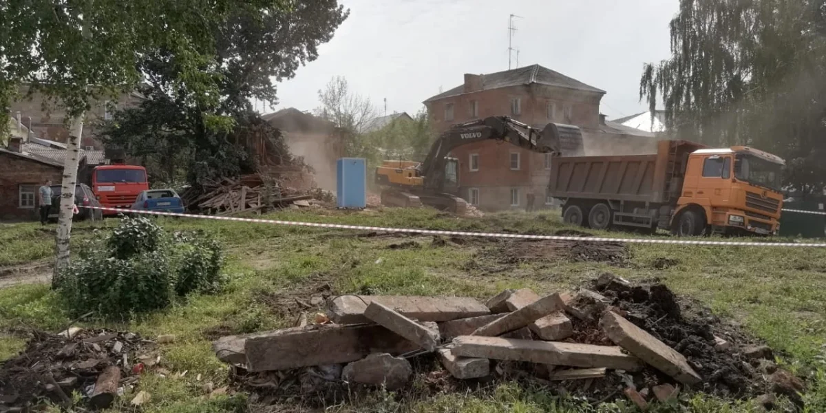 Сегодня, 28 июля, идет снос аварийного дома на ул. Союзной, 5.