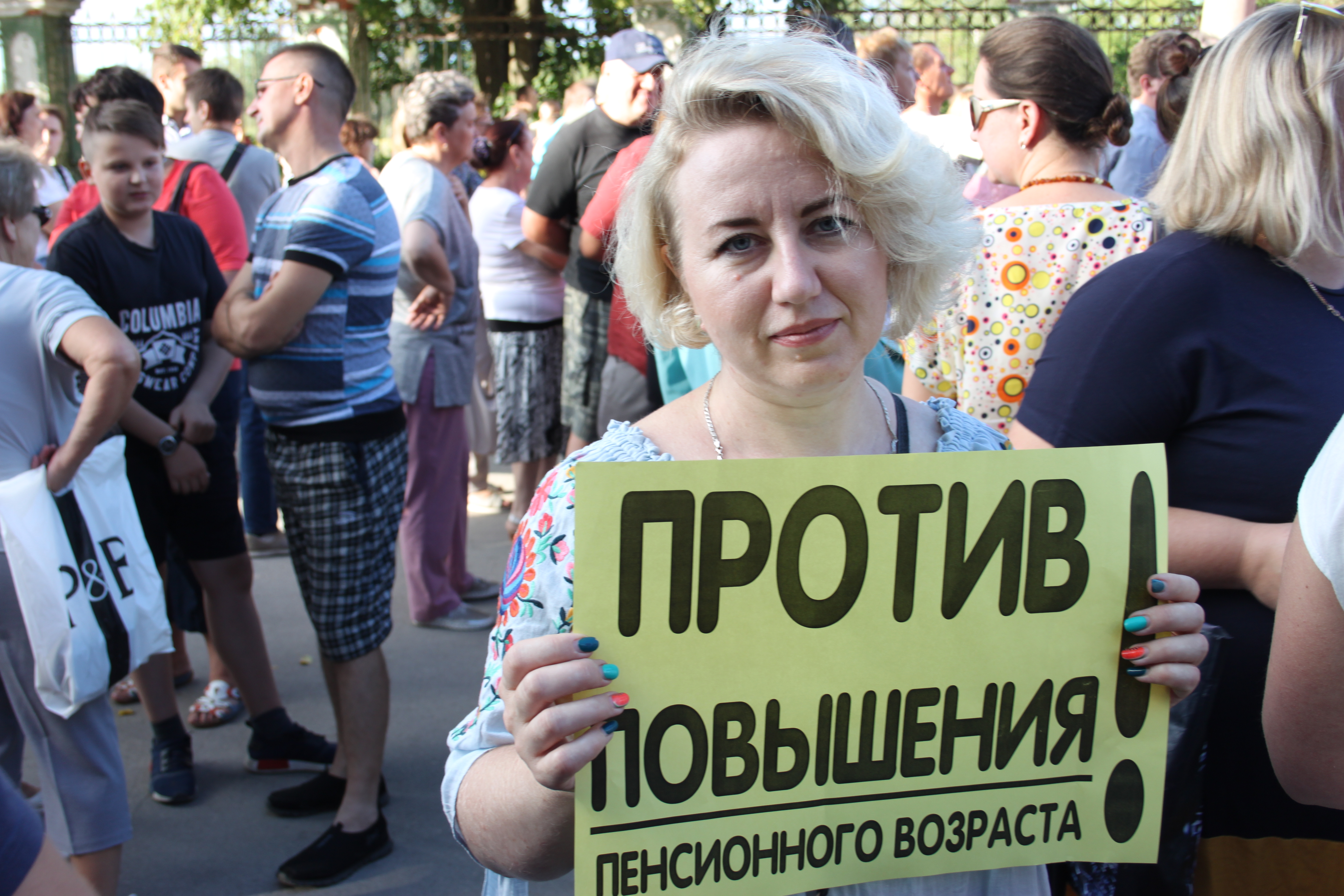 Светлана: Я пришла, чтобы высказать протест против повышения пенсионного возраста. Преподаю в высшем учебном заведении. Поскольку у преподавателей вызов нет льготной трудовой пенсии, мне предстоит работать до 63 лет. Считаю это не целесообразным, потому что после 60 лет не каждый человек будет «в строю». Я пришла с детьми, которые понимают, что по ним реформа тоже ударит, поскольку они останутся без рабочих мест и без помощи бабушек, когда появятся дети.