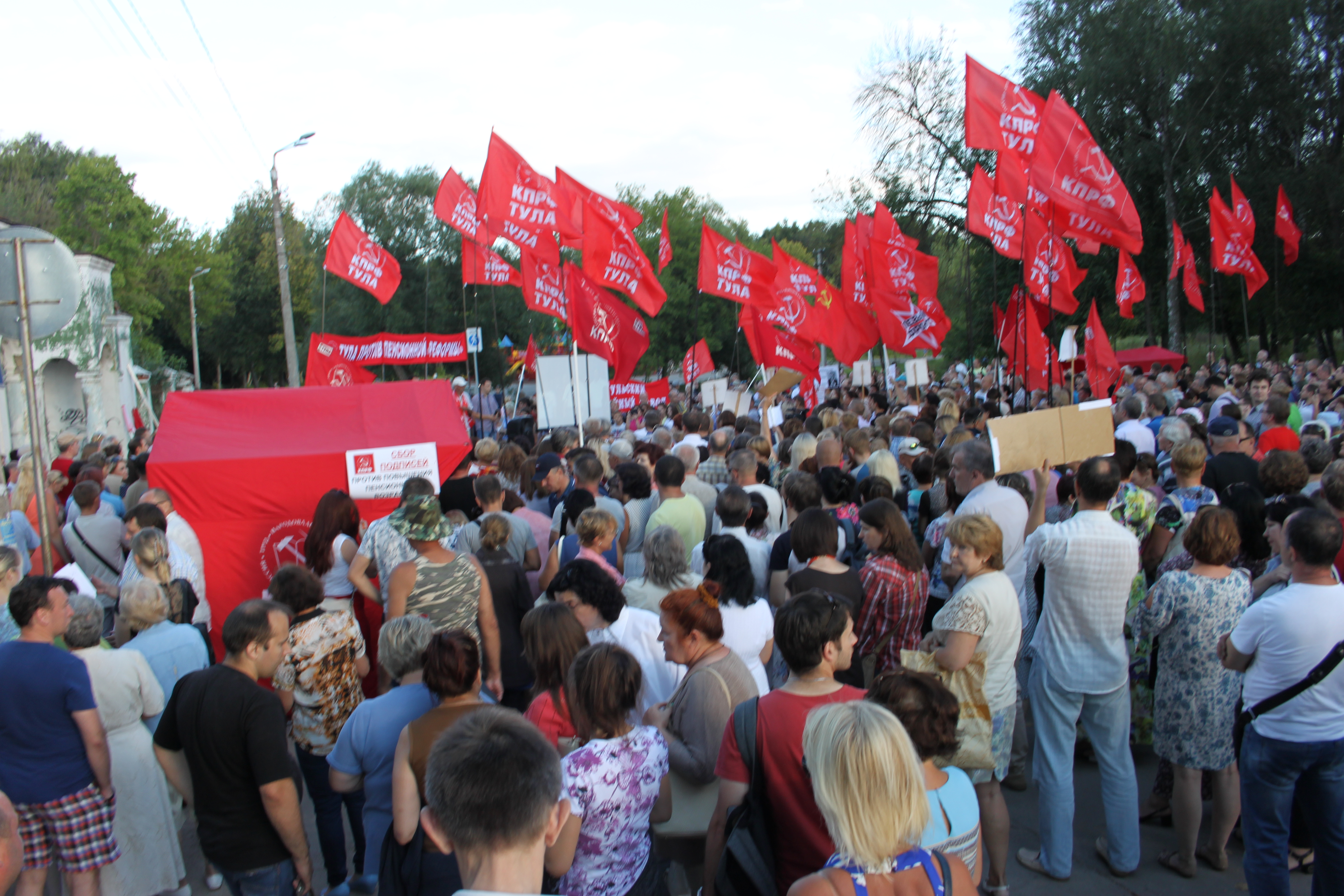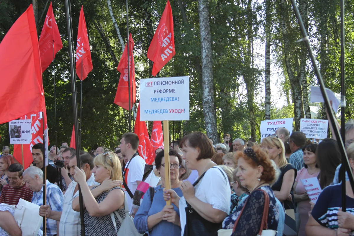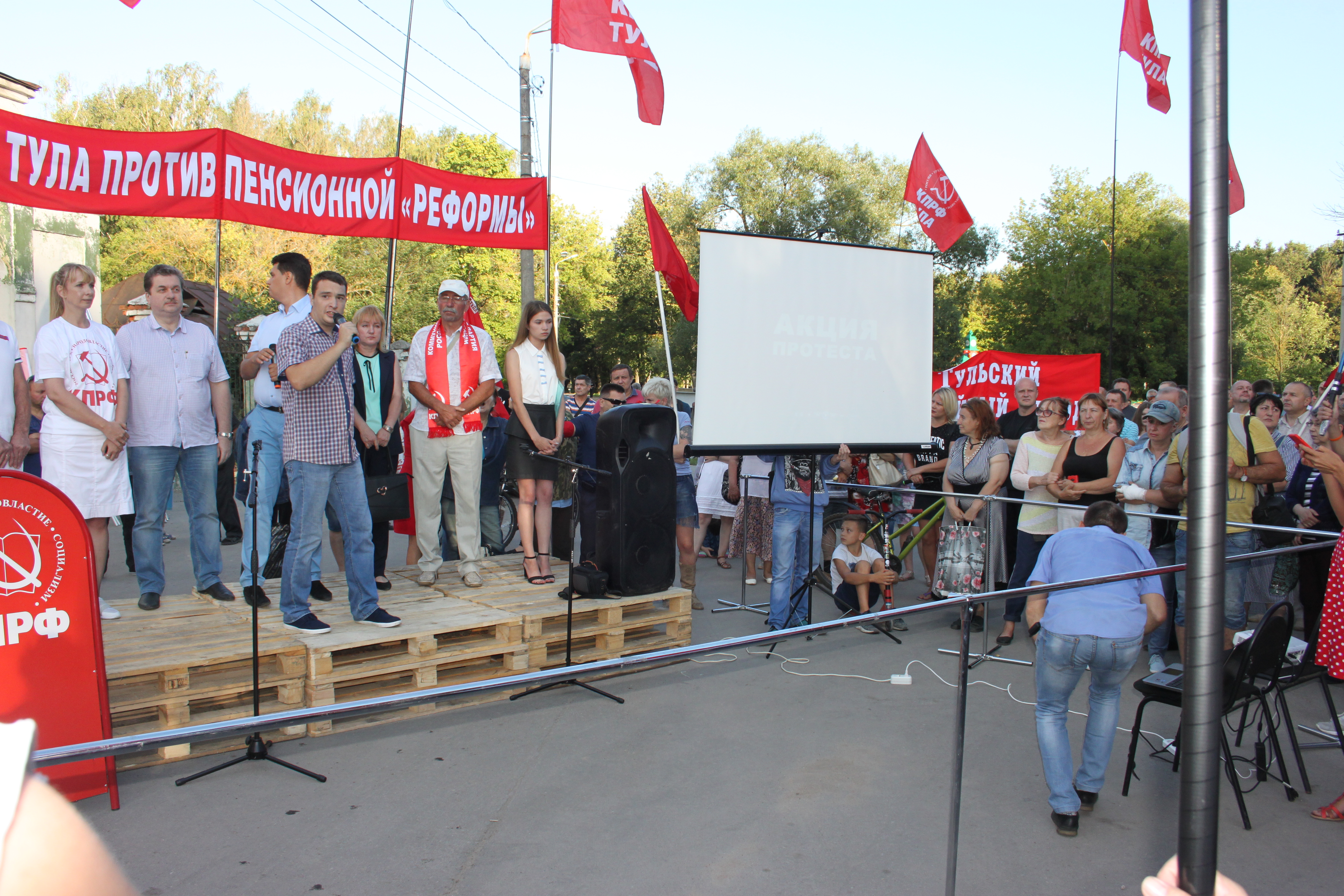 Перед собравшимися выступил лидер тульских коммунистов Олег Лебедев. Он заострил внимание митингующих на том, что увеличение пенсионного возраста поможет «украсть» 1,5 миллиона рублей у работающих мужчин и 2,5 – у женщин.