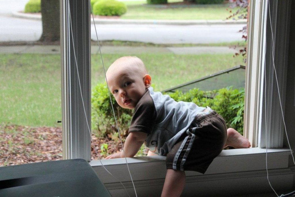- Воспитывайте ребенка правильно: не ставьте его на подоконник, не поощряйте самостоятельного лазания туда, строго предупреждайте даже попытки таких «игр».