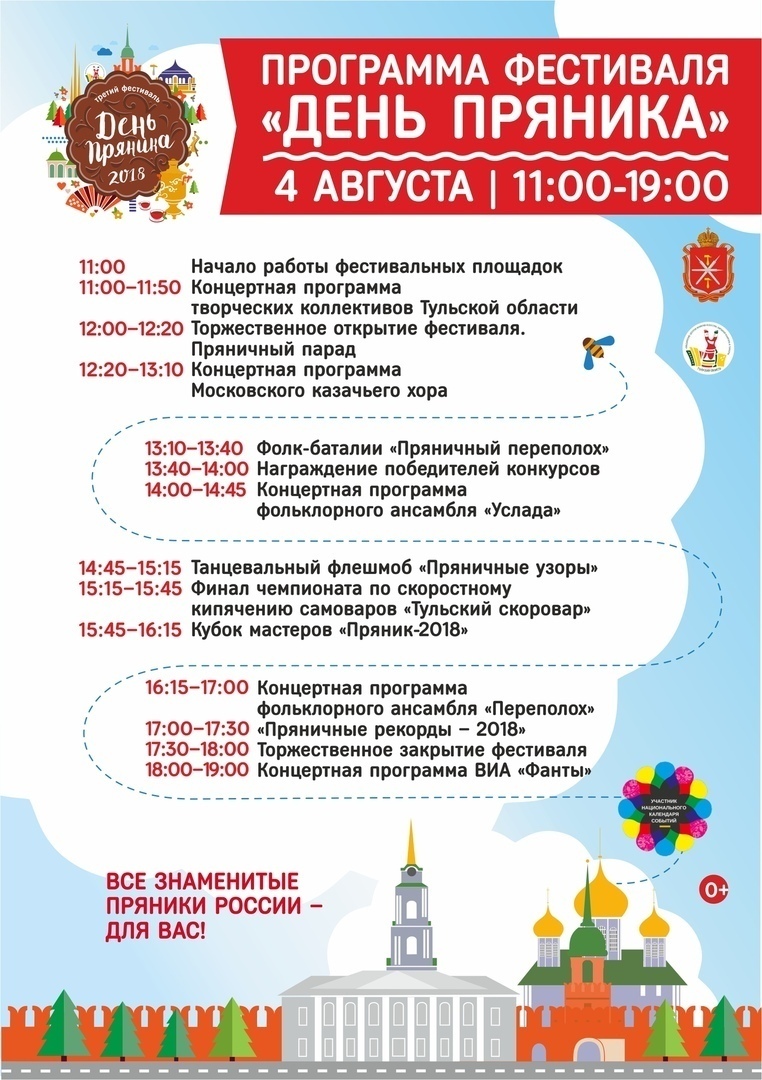 4 августа в Туле пройдёт традиционный фестиваль «День пряника». ПРОГРАММА