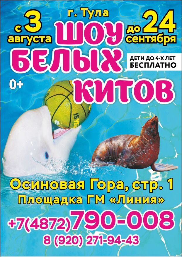 В Туле на площадке ГМ «Линия» начал свои гастроли дельфинарий с программой «Шоу белых китов».