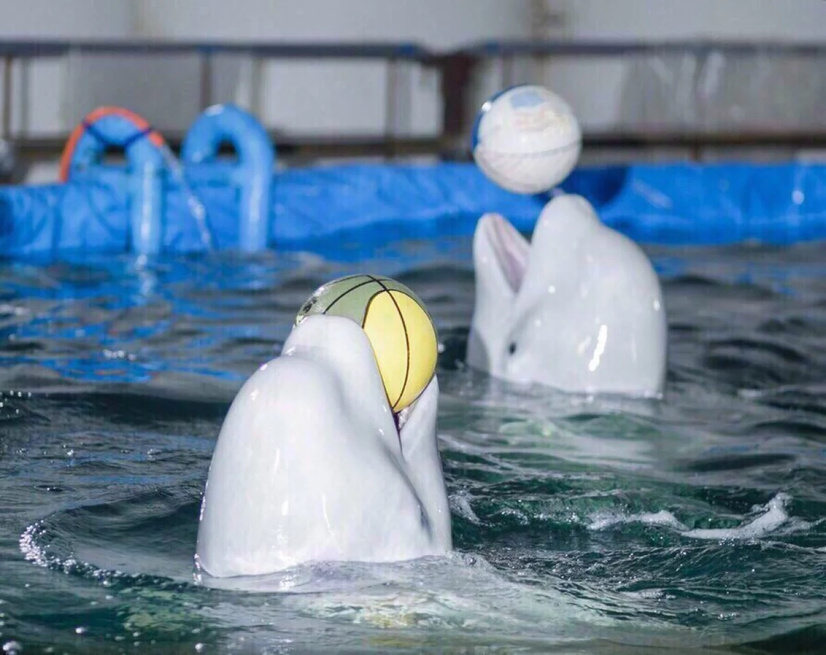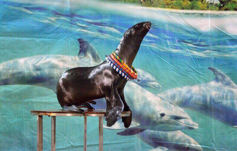Питомцы дельфинария - два дельфина-белухи и морской котик, которые с удовольствием продемонстрируют вам все свои