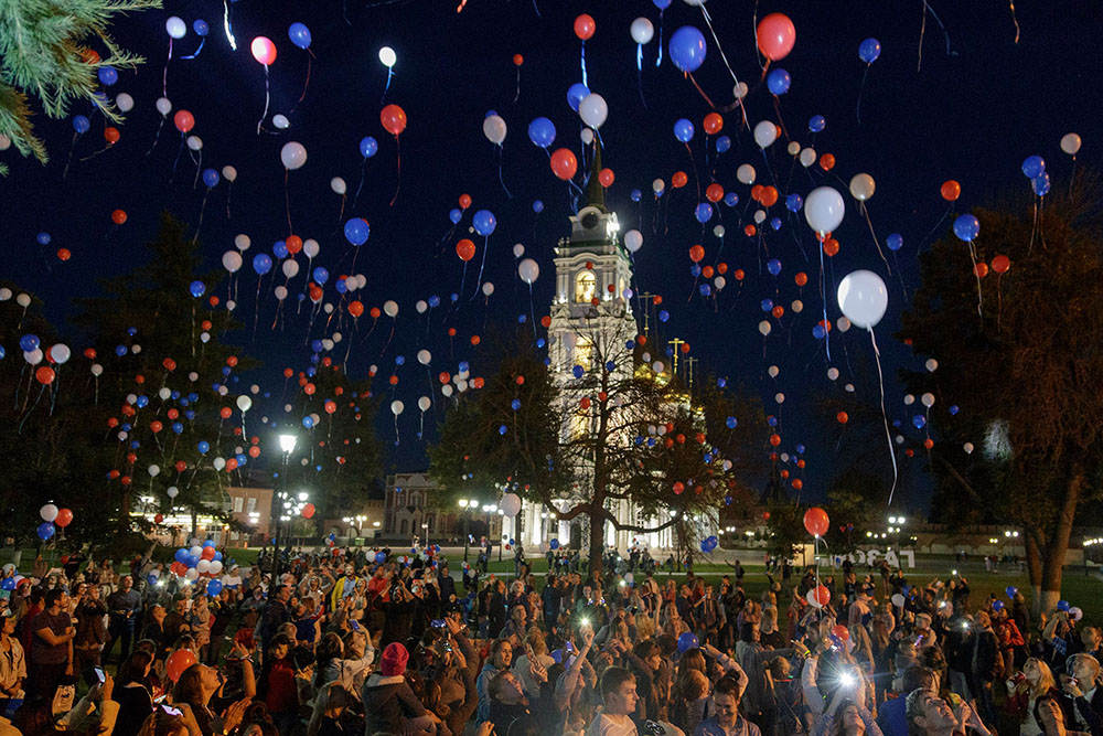 Завершилось празднование запуском в небо гелиевых шаров с диодами.