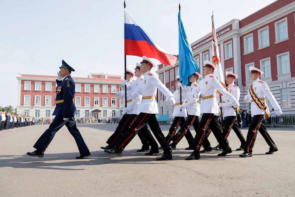 Суворовцев поздравил заместитель руководителя аппарата Министра обороны РФ Игорь Ветров. Он отметил большую роль училища в воспитании будущих защитников Родины.