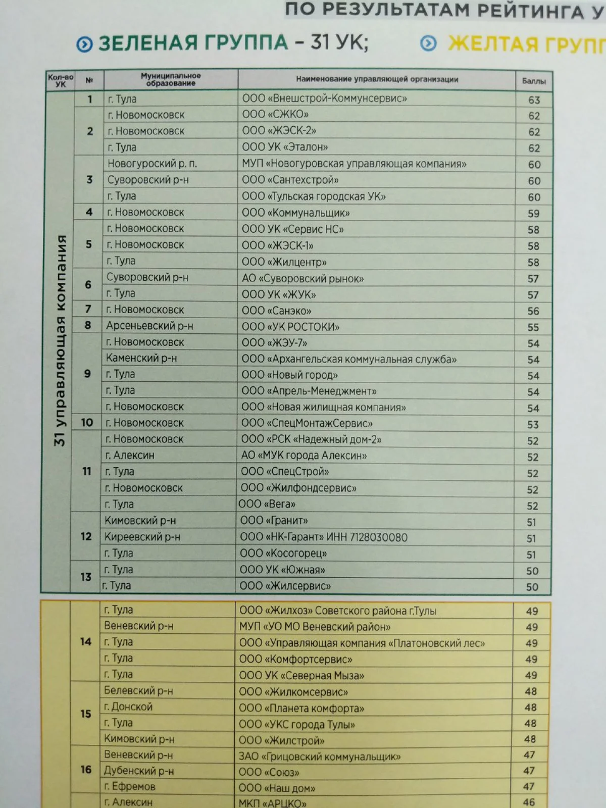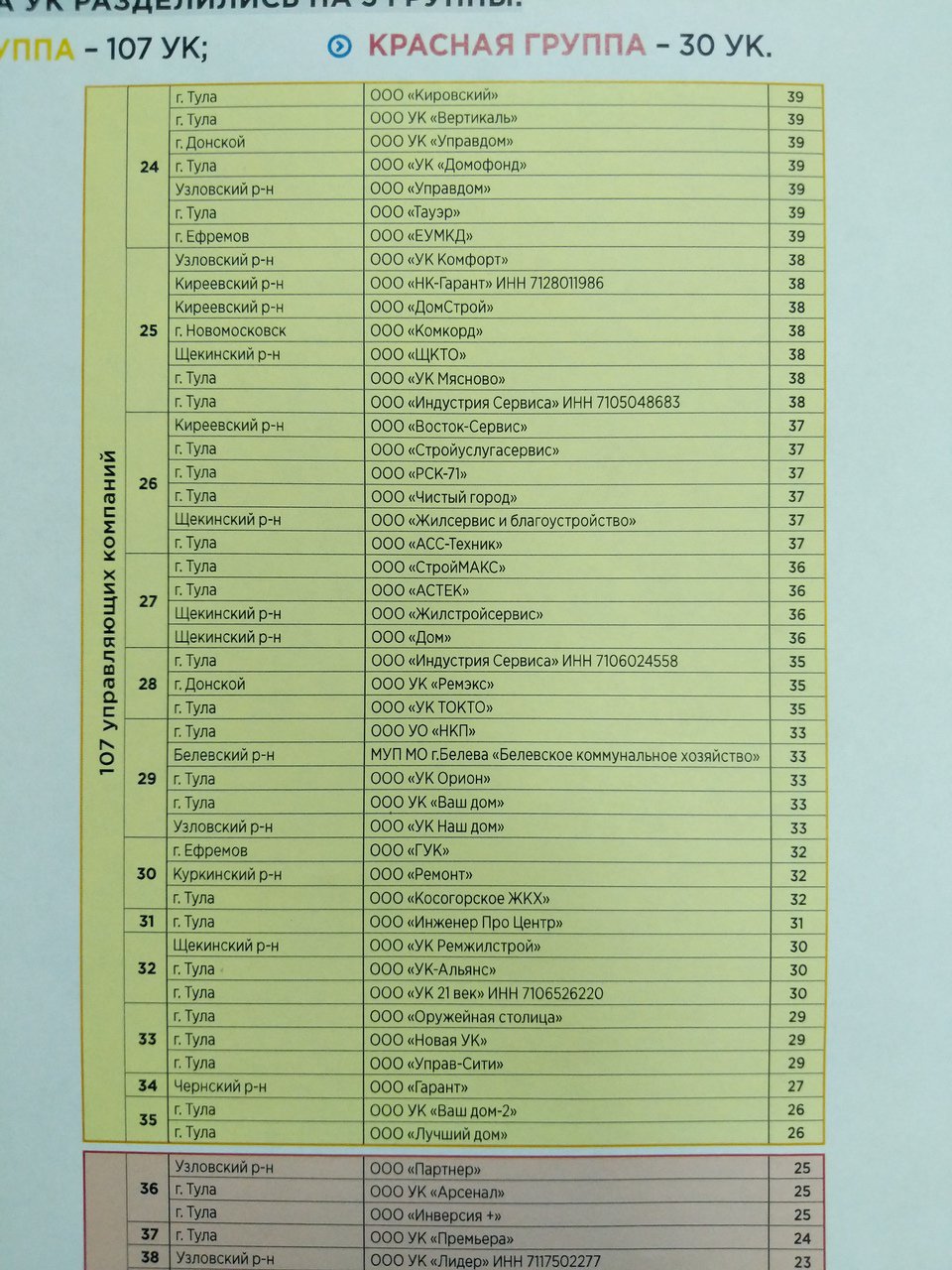 Всего в Тульской области 285 УК. Рейтинги предоставляют ежеквартально. Молодые компании, которые начали управление