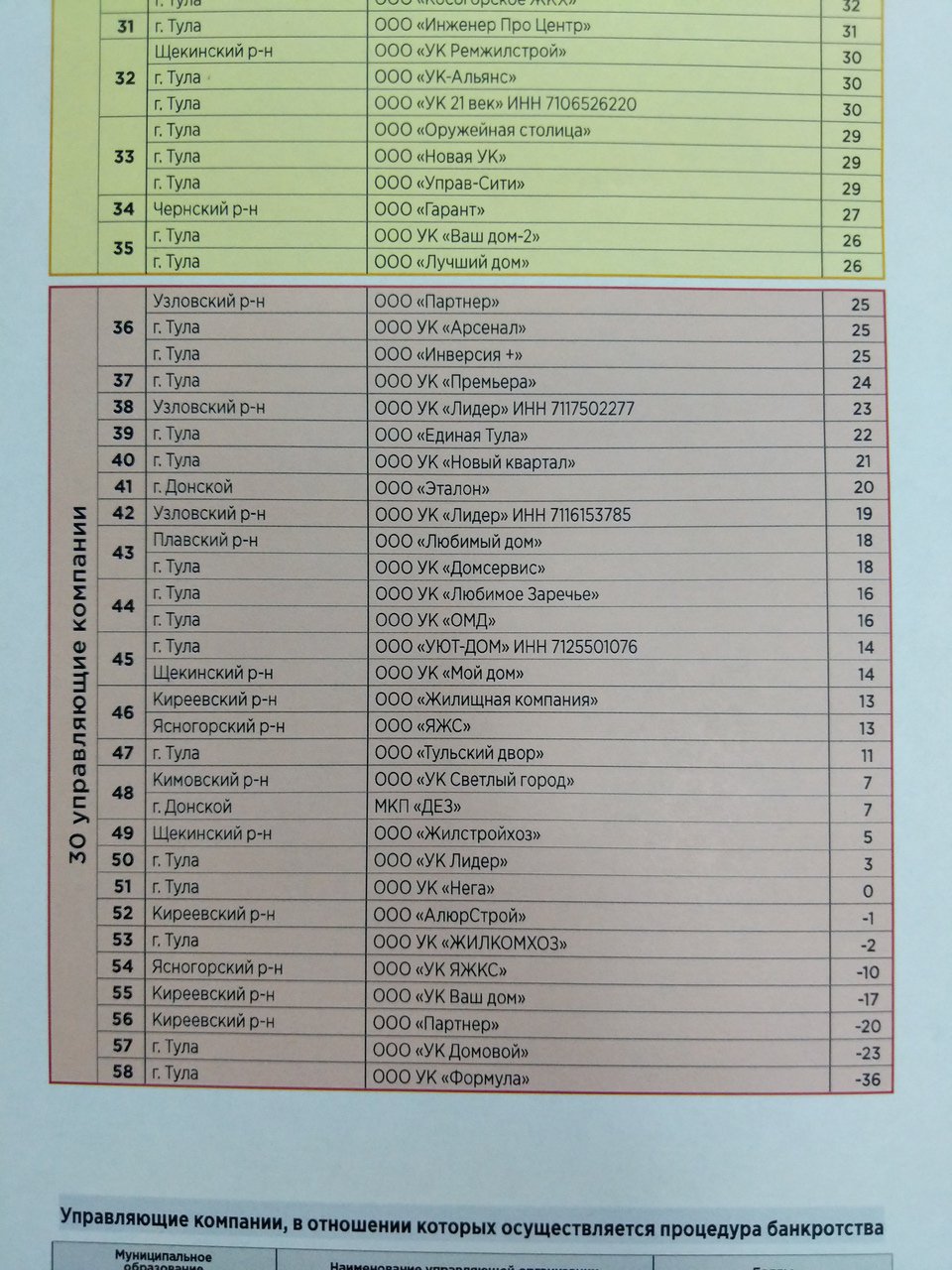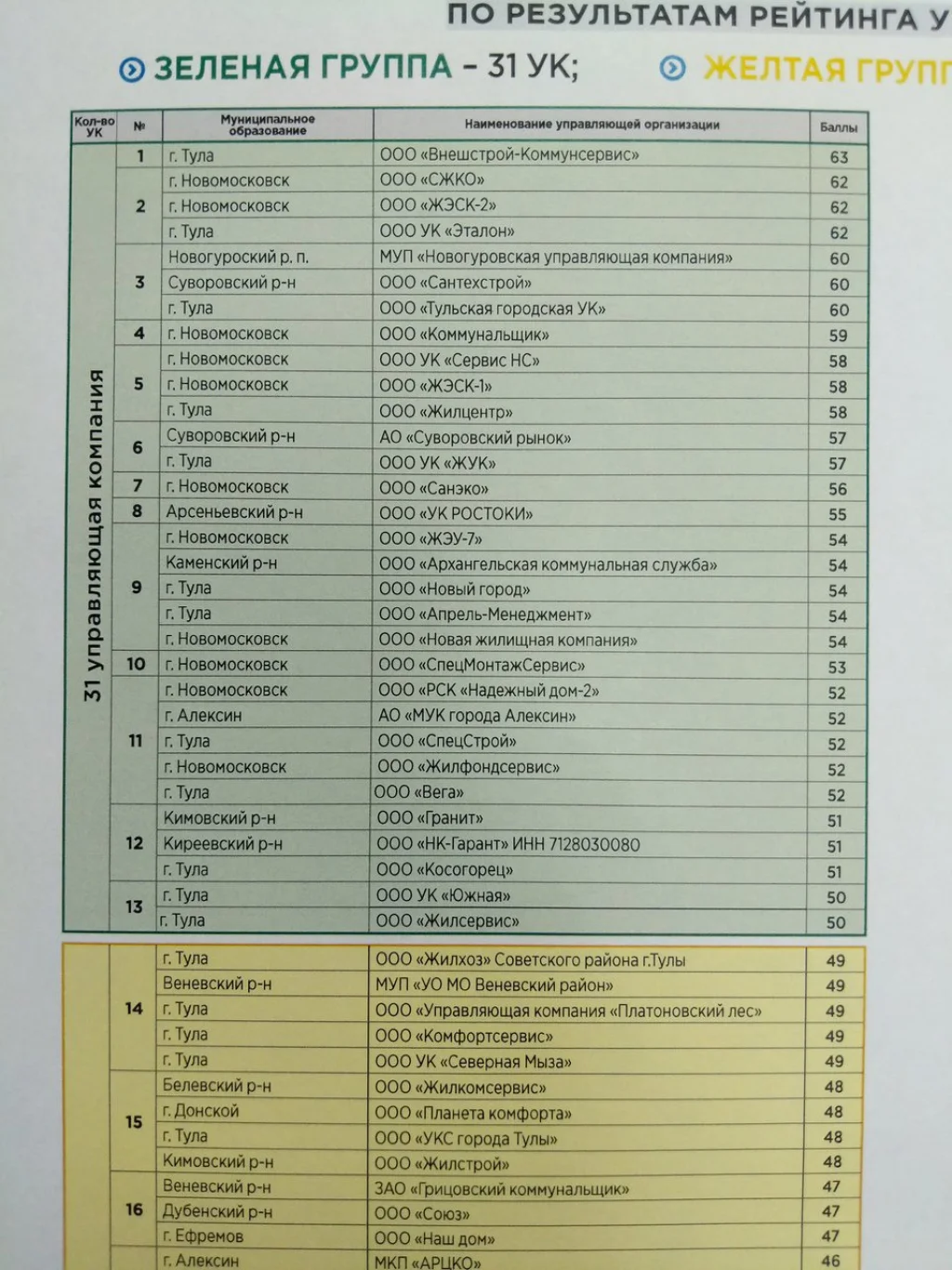 В Туле представили новый рейтинг УК: кто попал в «красную» группу