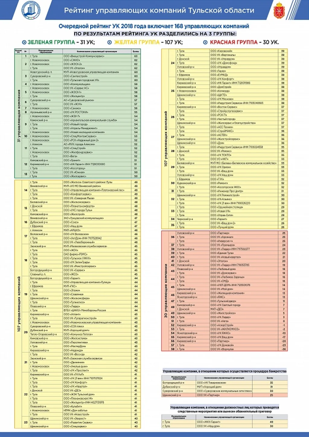 5 сентября начальник ГЖИ Тульской области Леонид Ивченко провёл пресс-конференцию, на которой был представлен обновленный рейтинг управляющих компаний.