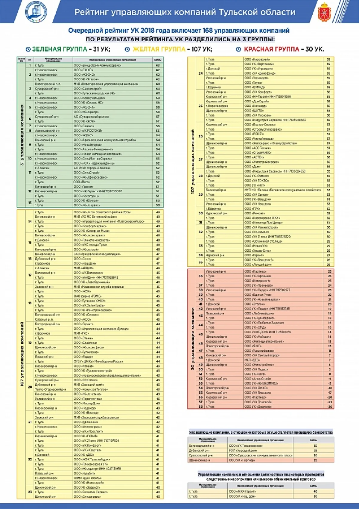 В новую редакцию вошли 168 УК. Традиционно все управляющие организации поделены на три группы – зеленую, желтую и красную.