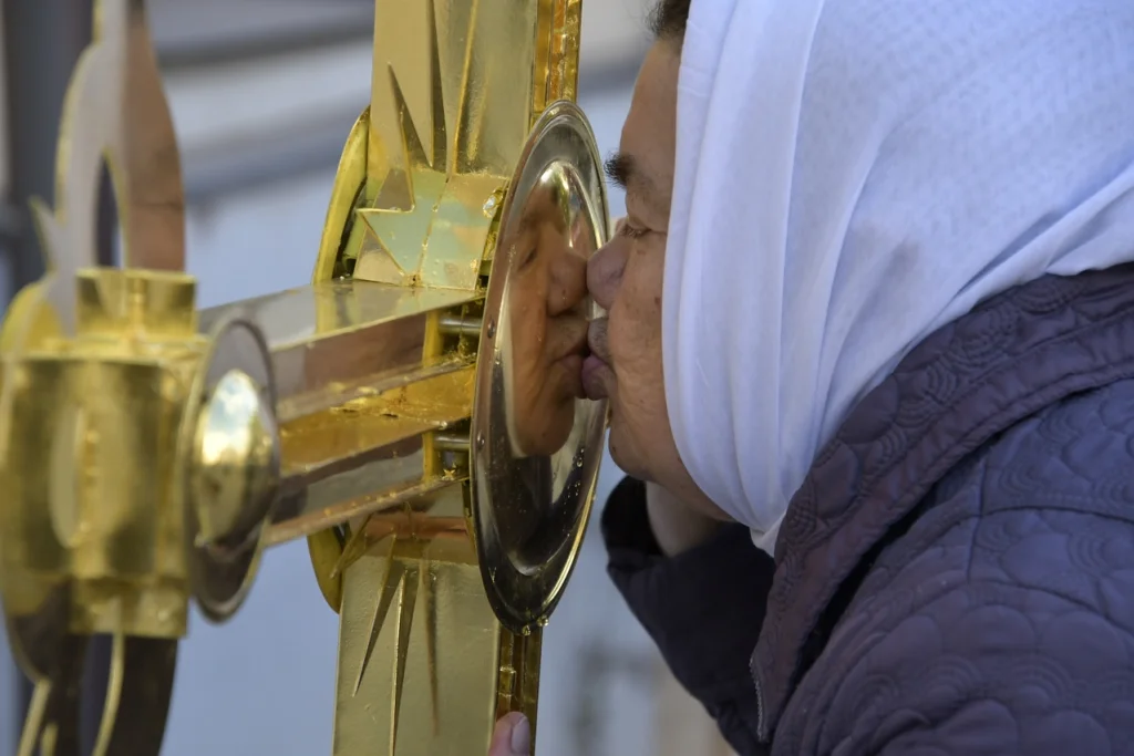 Перед установкой крест был освящён владыкой Алексием, после чего к святыне смогли приложиться все желающие.