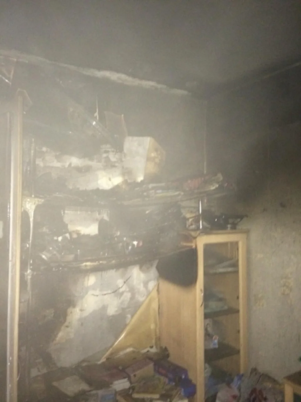 В результате происшествия в комнате сгорел телевизор и обгорел шкаф, закоптились стены и потолок по всей площади квартиры.
