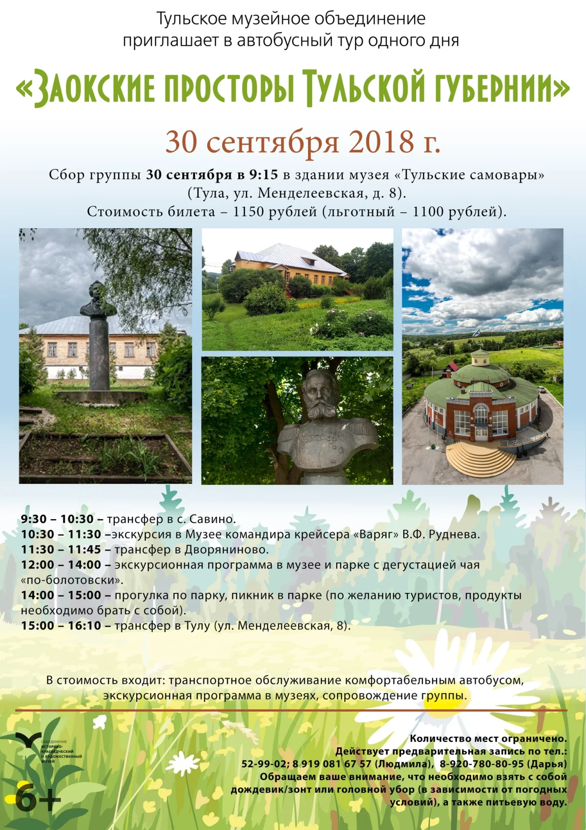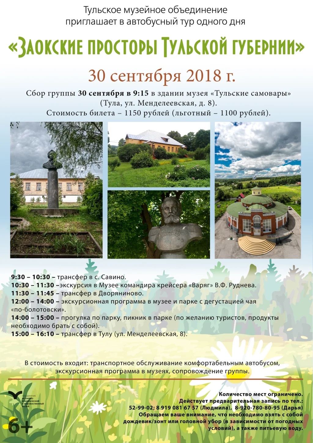 Сбор группы 30 сентября в 9:15 около здания музея «Тульские самовары» (Тула, ул. Менделеевская, д. 8).