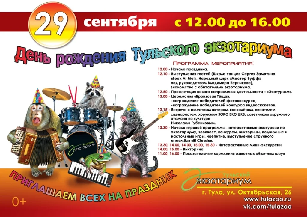 Тульский экзотариум приглашает гостей на свой День рождения. ПРОГРАММА