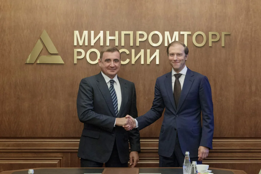Алексей Дюмин поблагодарил Дениса Мантурова за поддержку инициатив правительства Тульской области и отметил надёжные и конструктивные отношения. По словам губернатора, Тула в числе первых в стране реализует инициативы Минпромторга России: создан региональный фонд развития промышленности, заключены федеральные и региональные специальные инвестиционные контракты. За последние 2 года предприятиям Тульской области оказана субсидиарная поддержка на общую сумму свыше 2 млрд рублей.