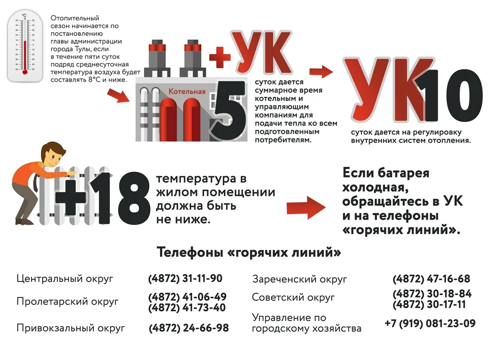 Если у вас возникли проблемы с отоплением — смело звоните по телефонам горечей линии.