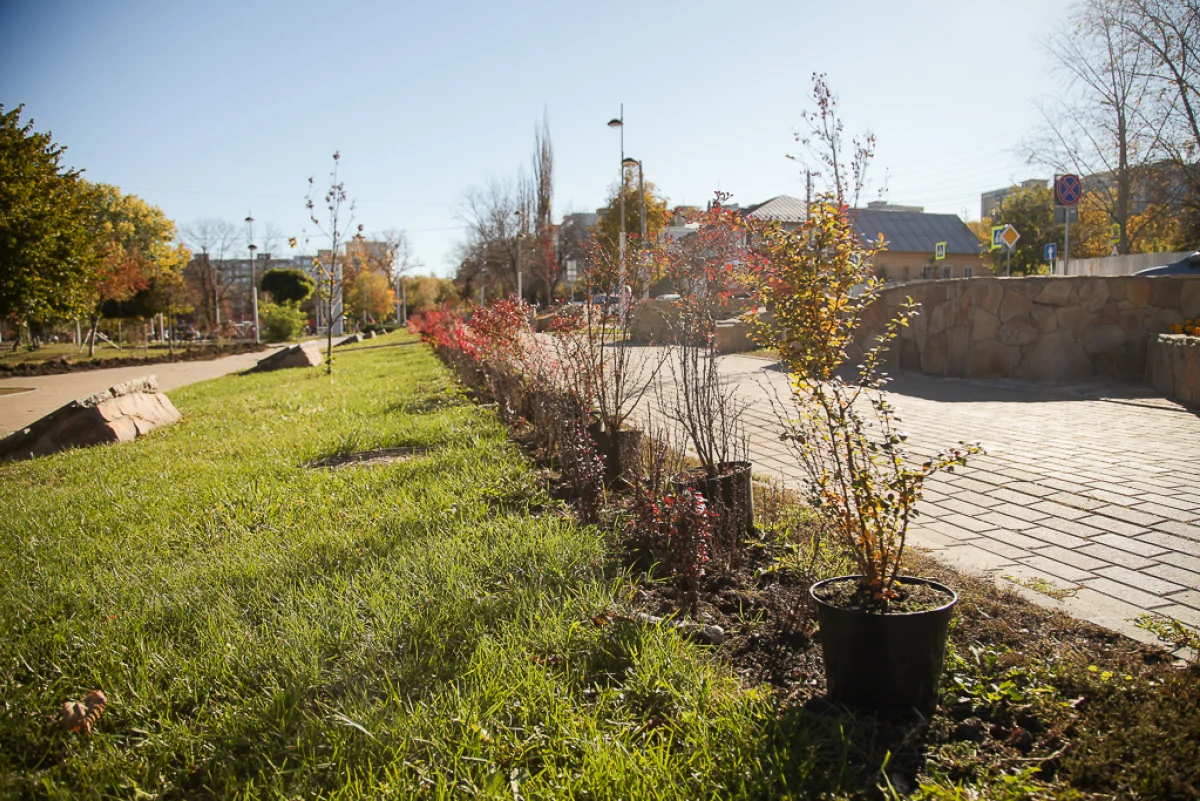 Сегодня, 11 октября, в сквере воинов-интернационалистов высаживают 108 кустов барбариса, 60 кустов гортензии, 50 кустов кизильника, 54 спиреи, 100 ирисов, 6 остролистных кленов и т.д.