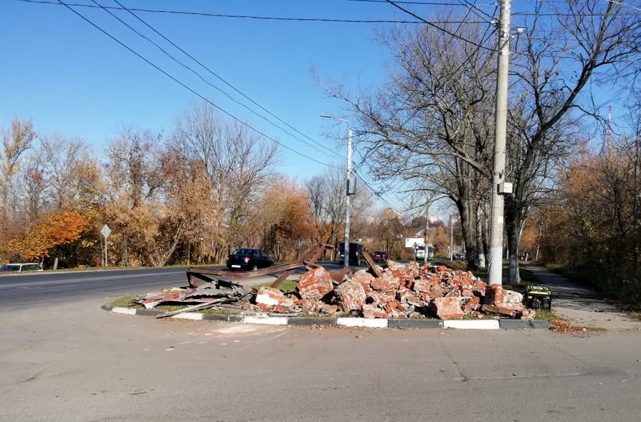 Сегодня, 20 октября 2018 года, в поселке Менделеевском в Туле был произведен демонтаж существующей въездной стелы.