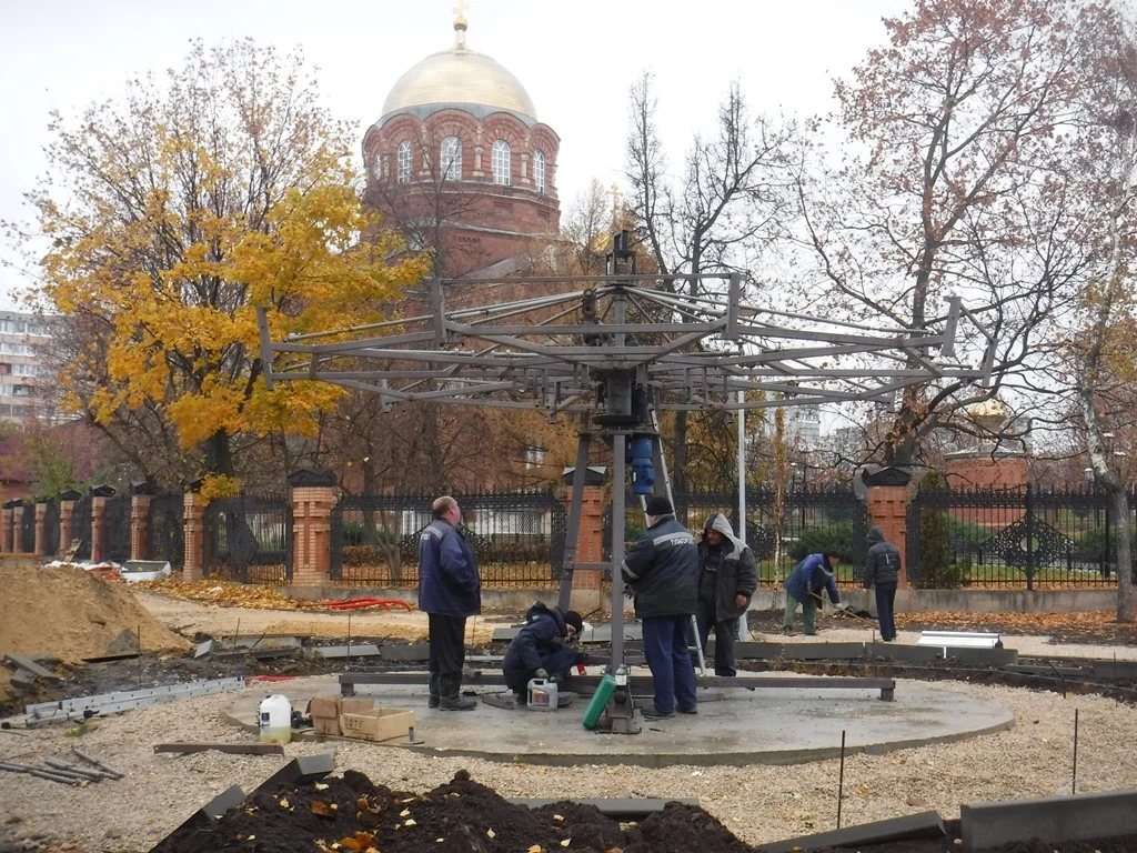 В Зареченском районе Тулы, возле пиццерии «Ташир», благоустраивают новый сквер. Рабочие устанавливают детские карусели и фонари, обустраивают пешеходные дорожки, проводят работы по озеленению.