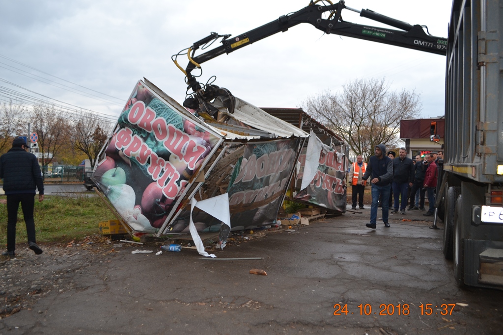 В Пролетарском округе ломают палатки незаконных торговцев