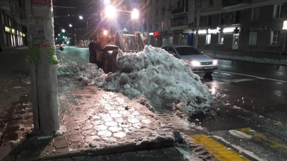Снег убирали с остановок и пешеходных переходов, а также мостов и путепроводов. Производилась обработка противогололедным