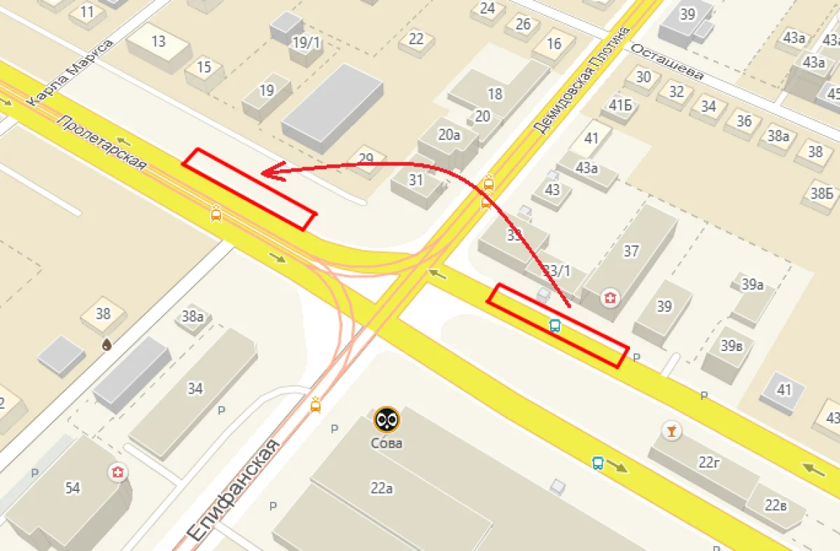 Остановку вынесут за пределы перекрёстка ул. Пролетарской и ул. Демидовская Плотина.
