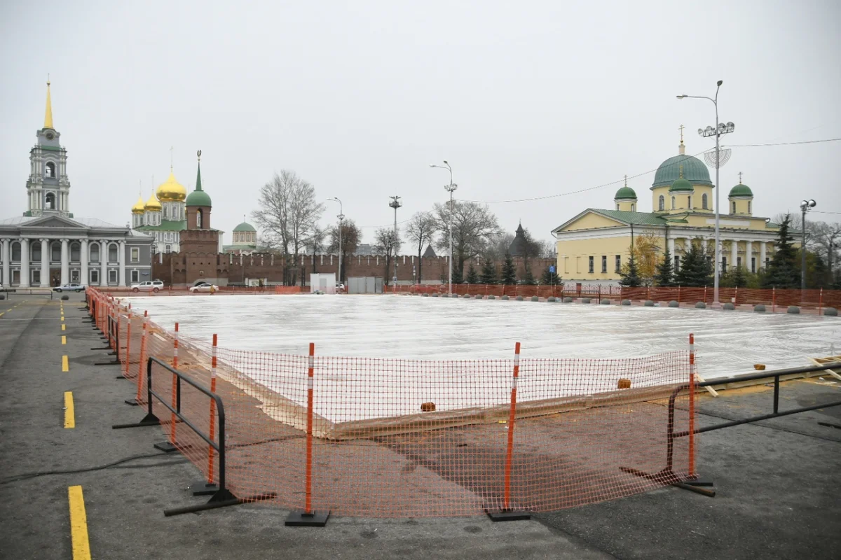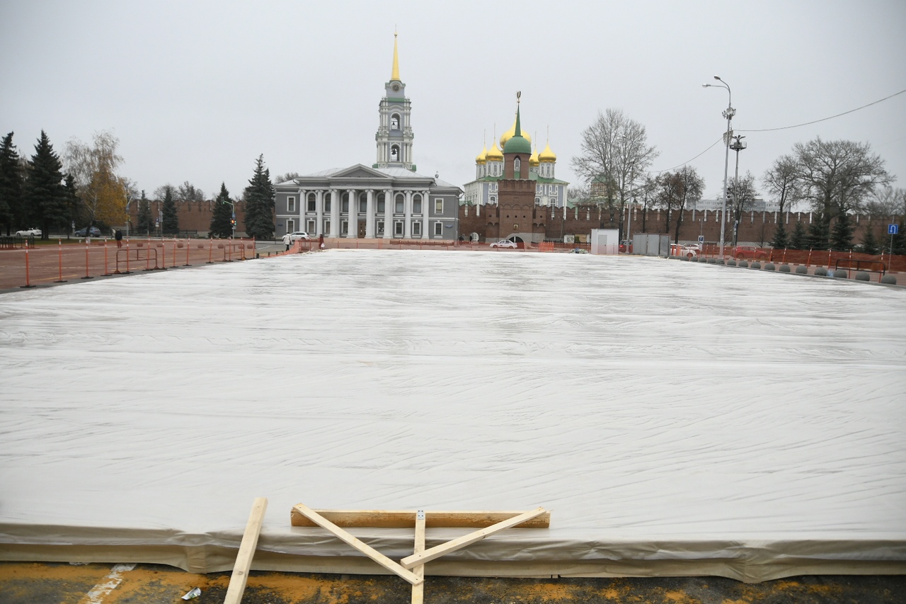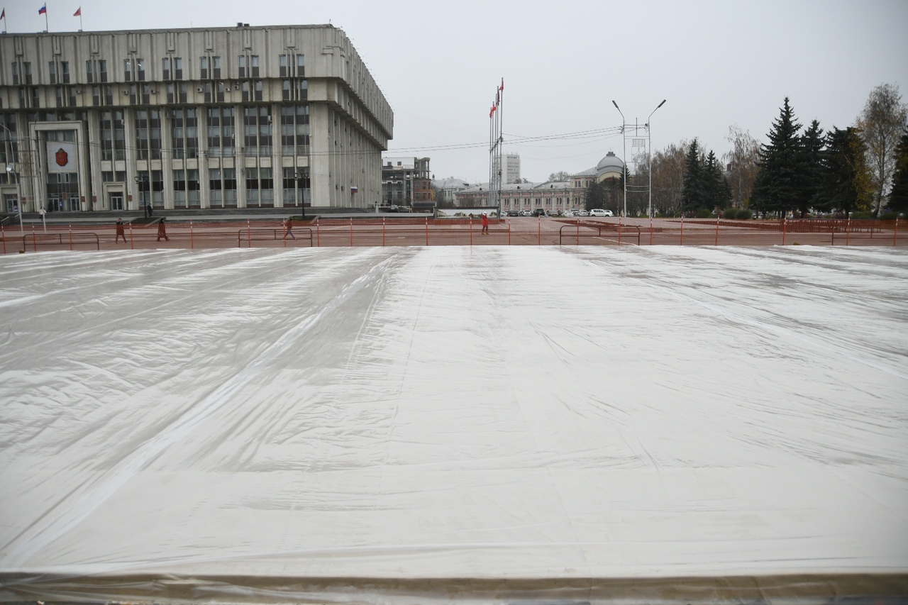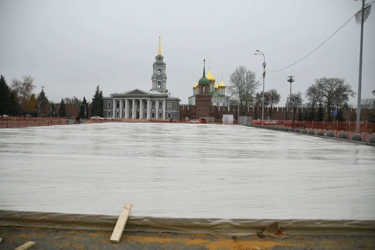 На площади Ленина в Туле заливают Губернский каток. ФОТО