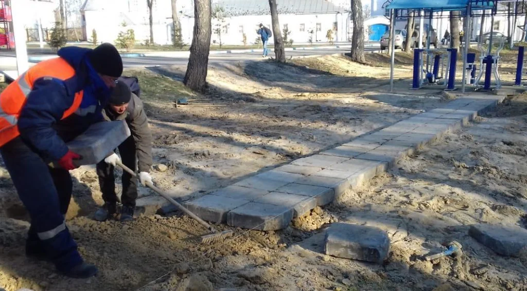 Здесь обустроили пешеходные дорожки и подход к спортивной площадке, установили новое спортивное оборудование.