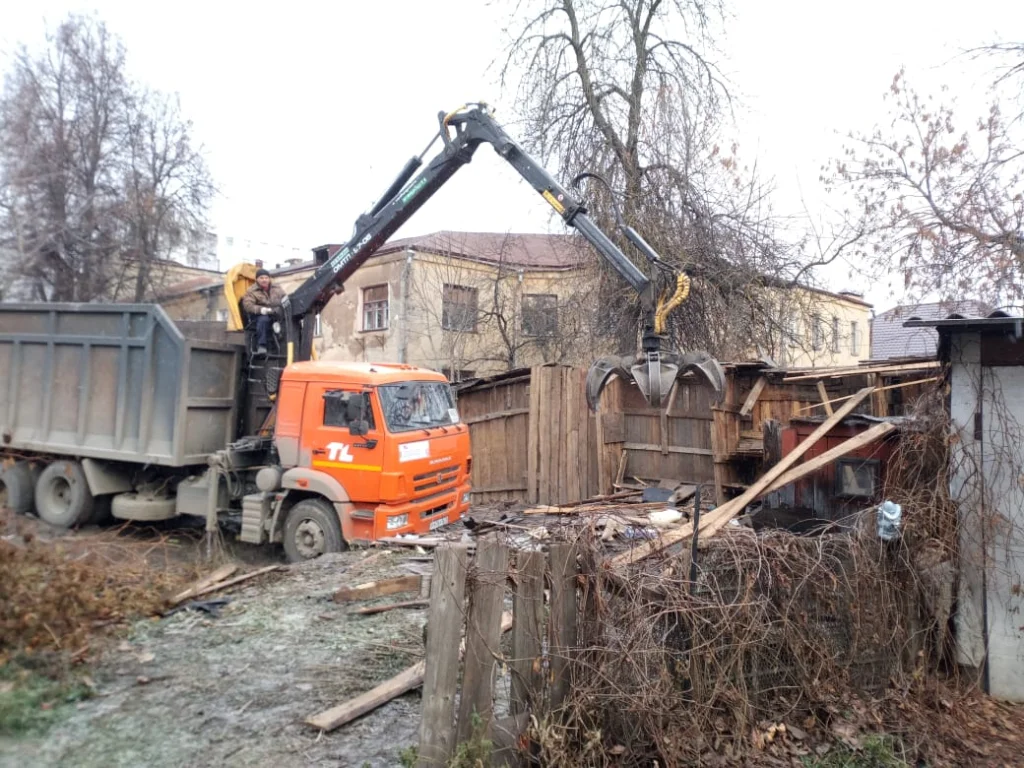 В Туле сносят незаконные строения на ул. Дзержинского 13, 15, 17.