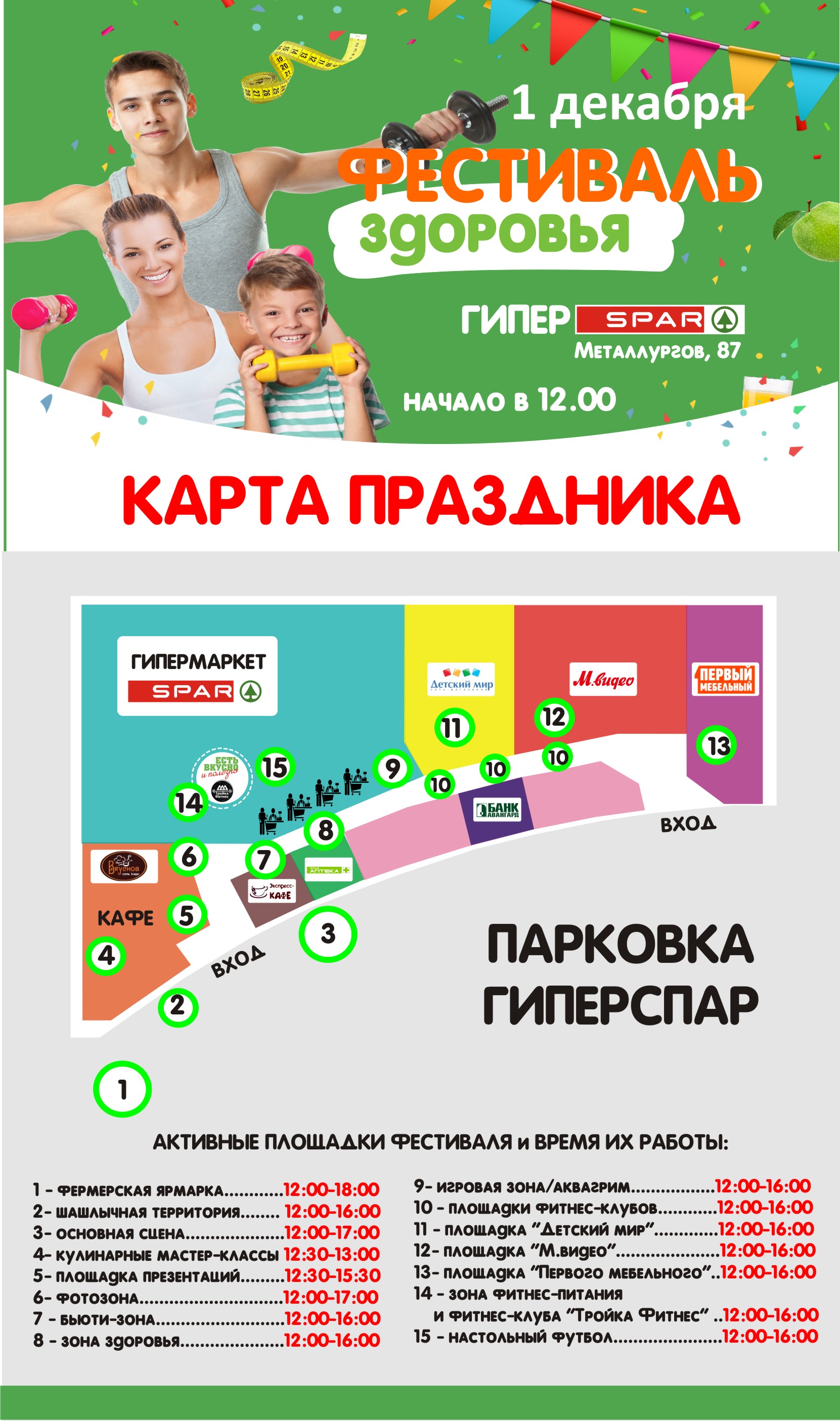 Фестиваль красоты и здорового образа жизни стартует в ГиперСПАРе 1 декабря в 12:00. Завершится суббота ЗОЖ большим розыгрышем бытовой техники, сертификатов в фитнес-клубы и электронных гаджетов. (полные правила на сайте www.spartula.ru )