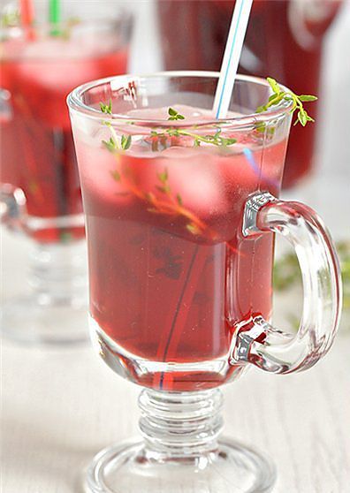 Добавьте в смесь сироп, залейте кипятком по вкусу, в конце добавьте свежий чабрец.