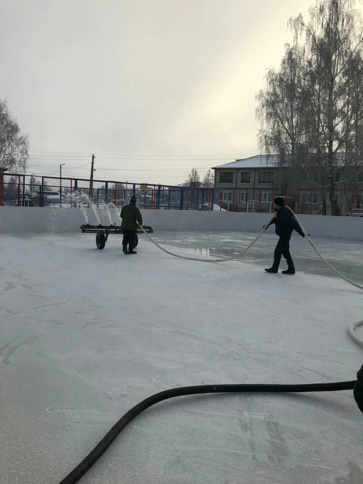 Житель села в прошлом году смастерил устройство для заливки и выравнивания льда.