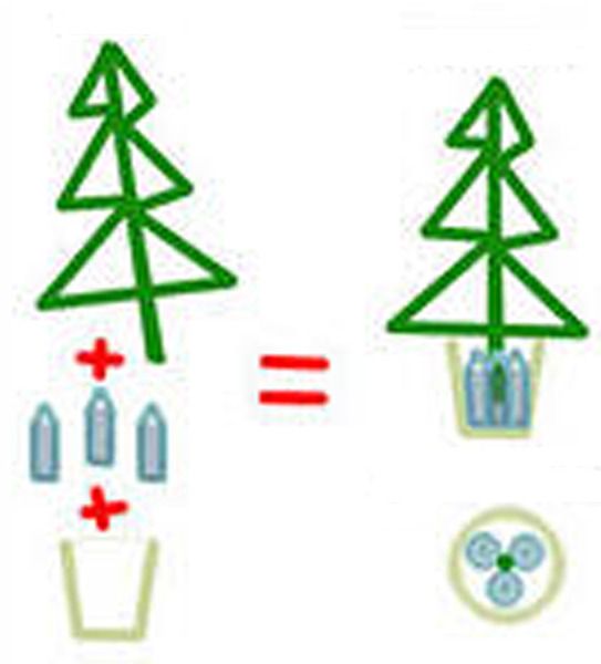 Также деревце можно поставить в ведро с водой. Далее закрепите ствол елки при помощи наполненных водой пластиковых бутылок, вставленных в ведро вокруг ствола.