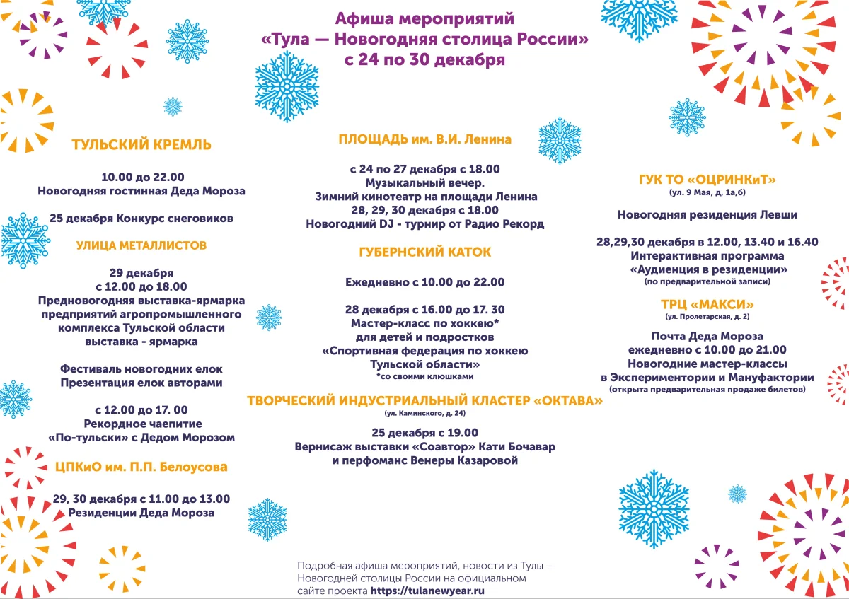 Тула - Новогодняя столица России, а это значит, что праздничные мероприятия проходят каждый день!