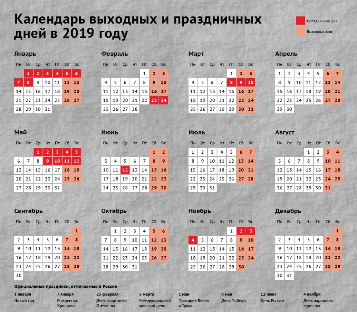 Итак, какие же праздничные выходные ждут нас в 2019 году?