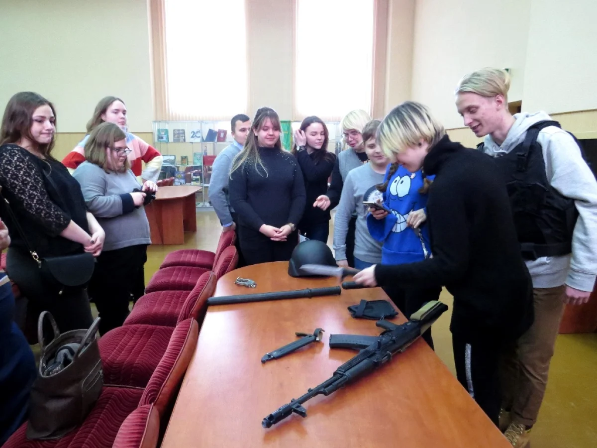 Сотрудник отдела оперативно-дежурной службы и таможенной охраны Игорь Поляков продемонстрировал учебное оружие и таможенное снаряжение, а наиболее «стойкие» юные экскурсанты смогли примерить десятикилограммовый бронежилет и защитный шлем.