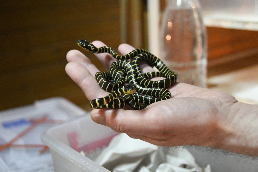 Четыре змееныша полностью жизнеспособны. Кроме Boiga dendrophila multicincta из инкубатора в «детскую»