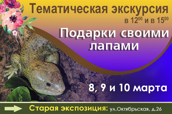 Интерактивная экскурсия «Подарки своими лапами»: 8, 9 и 10 марта в 12.00 и 15.00, старое здание Экзотариума (Тула, Октябрьская, 26). Оплачивается только входной билет. 0+.