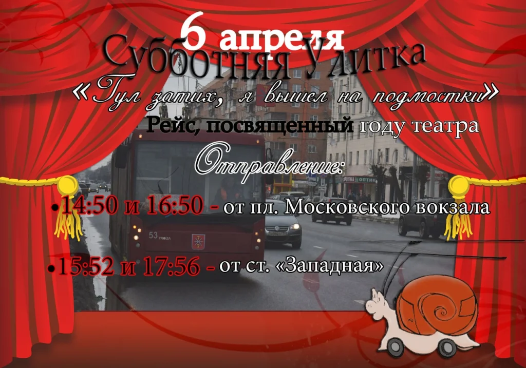 6 апреля состоится очередной выезд троллейбуса «Субботняя улитка». Этот выезд будет посвящён театру.