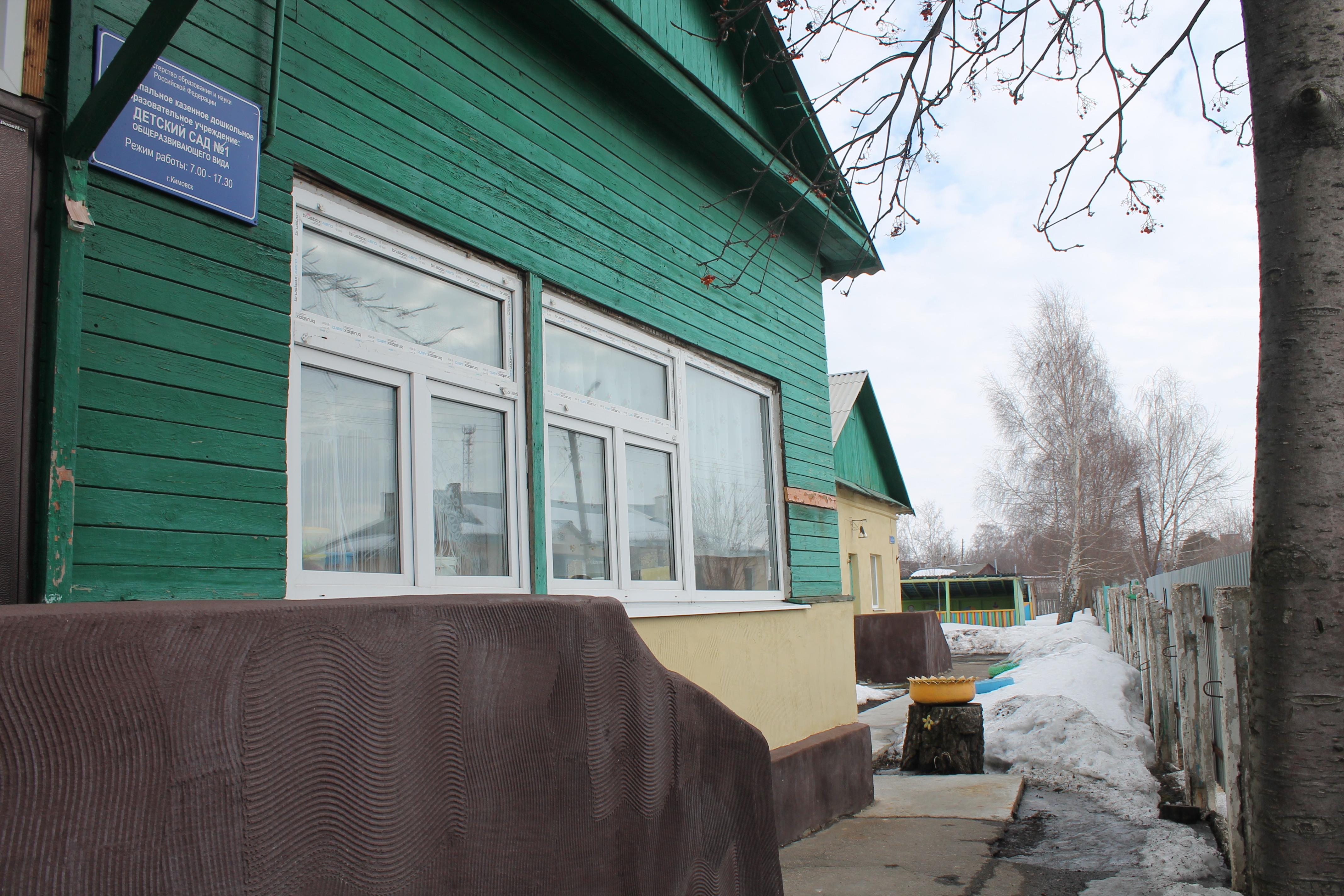 Детский сад № 1, расположенный на улице Ким, 29а открыли после войны, в конце 40-х годов. Помещение приспособленное, раньше это был жилой дом. С момента открытия садика он до сих пор продолжает отапливаться угольной котельной. В течение отопительного сезона учреждению в среднем требуется до 80 тонн угля, бывает, что и больше, в зависимости от погодных условий. Уголь подвозят «камазы», складируют сырье на заднем дворе. Внутри в котельной установлены две печи, которые, к слову сказать, заменили в 2014 г. Как сообщили общественникам сотрудники дошкольного учреждения, садик никогда не был включен ни в одну из программ газификации. Сегодня дошкольное учреждение посещают 80 малышей.