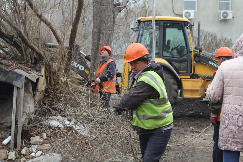 8 апреля работы по сносу бесхозных построек и очистке территории, прилегающей к историческому центру, проводились на улице Жуковского, дом 12.
