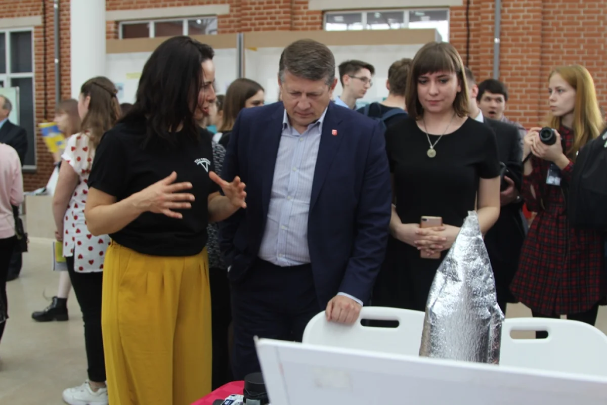 После приветствия Евгений Васильевич осуществил символический запуск ракеты на площадке «Космическая инженерия», тем самым открыв фестиваль «Выход на орбиту. Кем быть?».