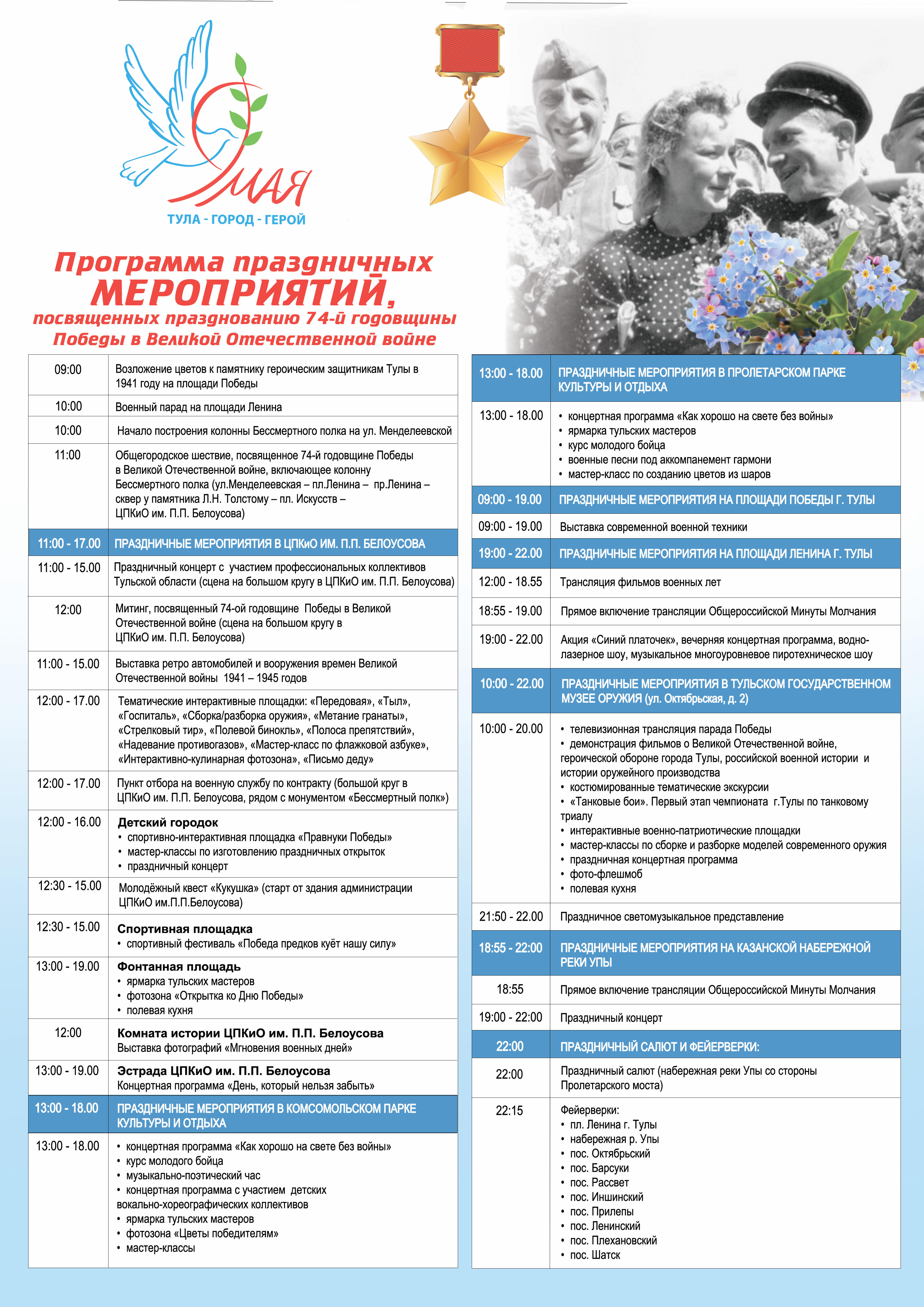 Приблизительная программа мероприятий на День Победы выглядит так: