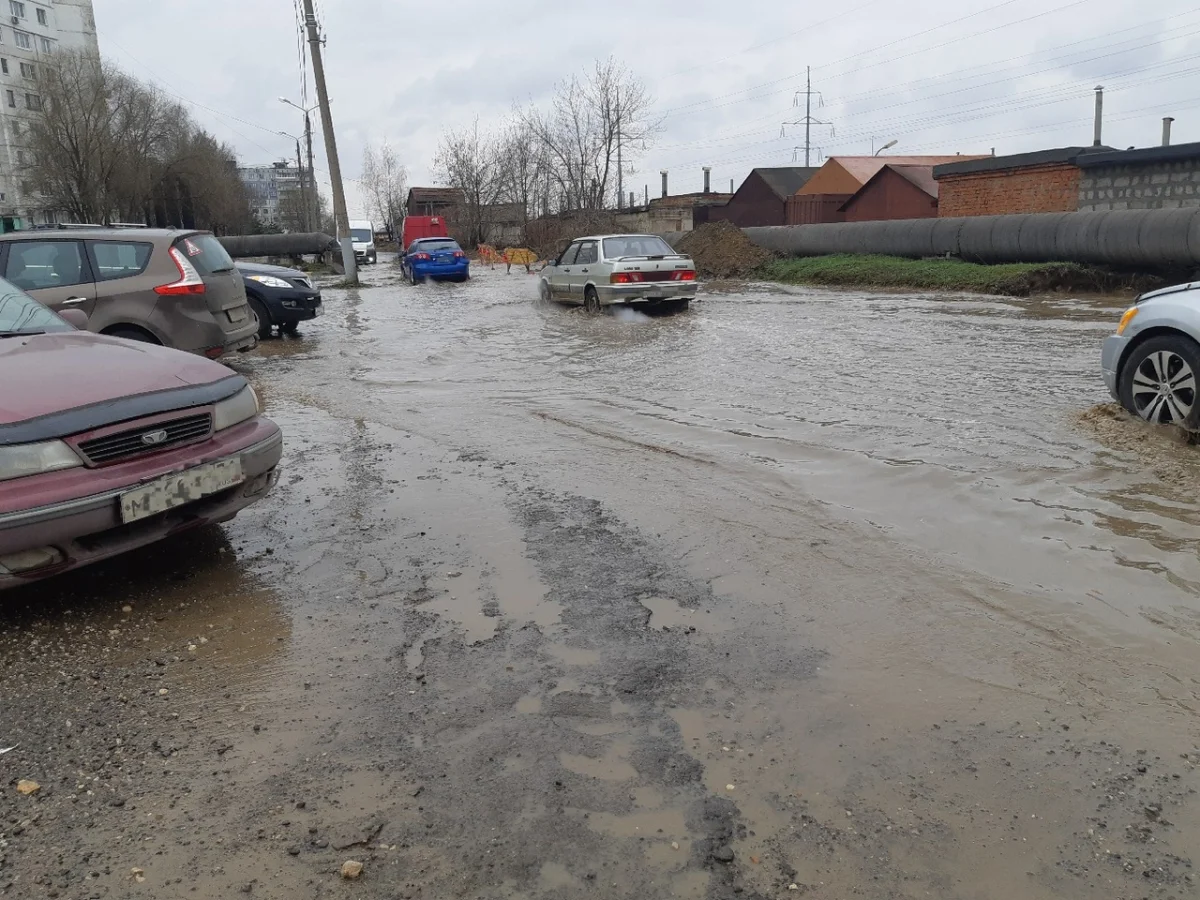Ещё одно грязное озеро разлилось на пересечении улиц Демидовская плотина и Октябрьская, создав, создав приличный затор.
