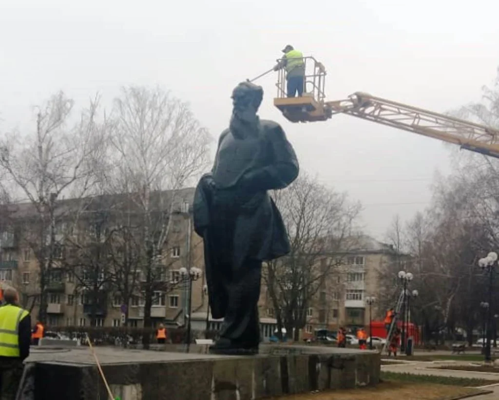 11 апреля в Советском районе Тулы велись работы по благоустройству. Рабочие привели в порядок сквер Льва Толстого: