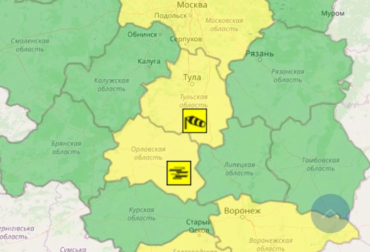 В Тульской области объявлен желтый уровень погодной опасности