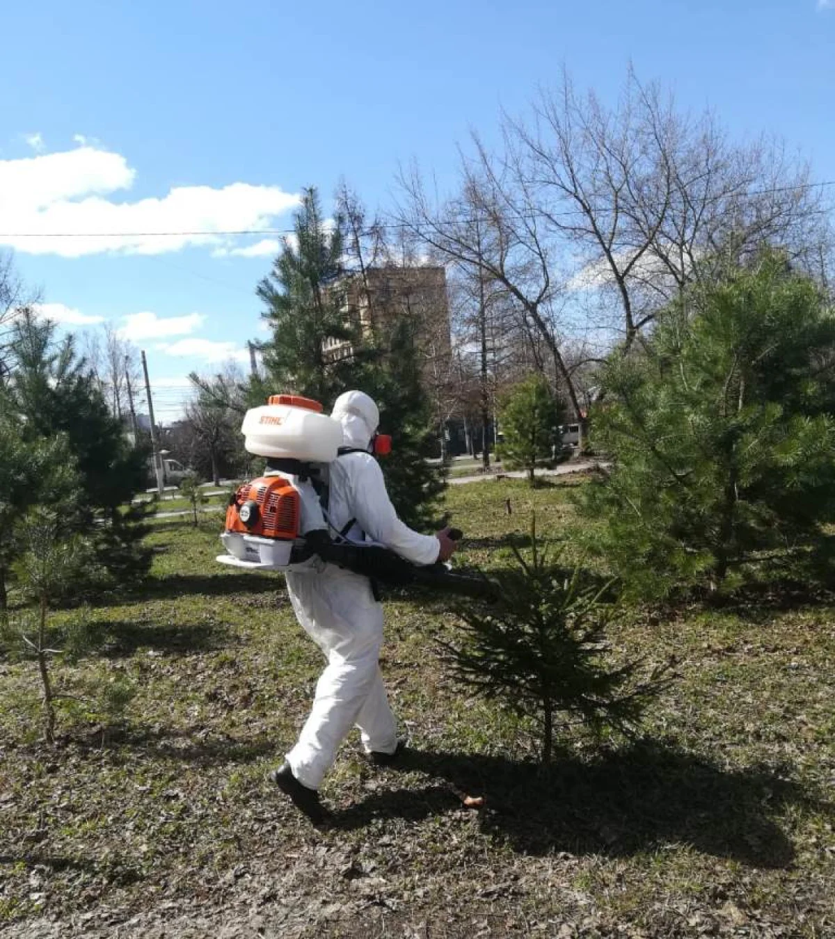 В областном центре продолжаются работы по акарицидной обработке территорий.